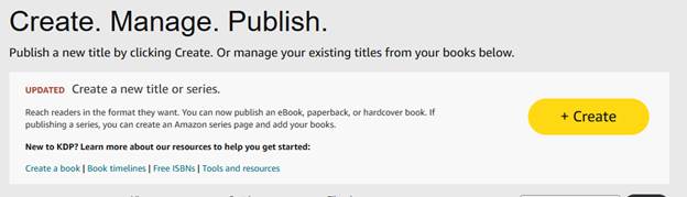 Primero, tenía que crearse una cuenta en kdp.amazon.com y luego tan solo buscar el botón gigante con la etiqueta “+ Create” que marcaría el inicio de su justa.